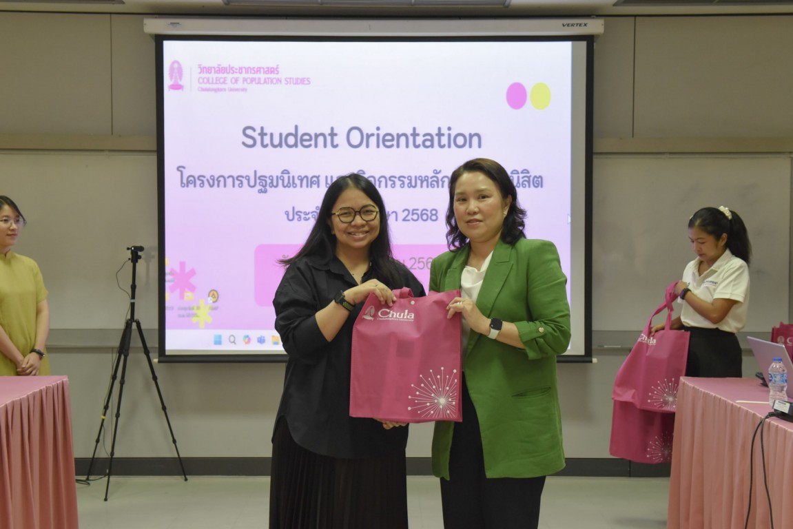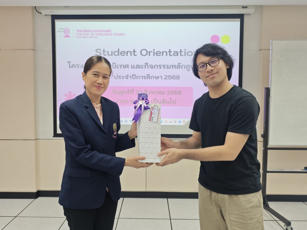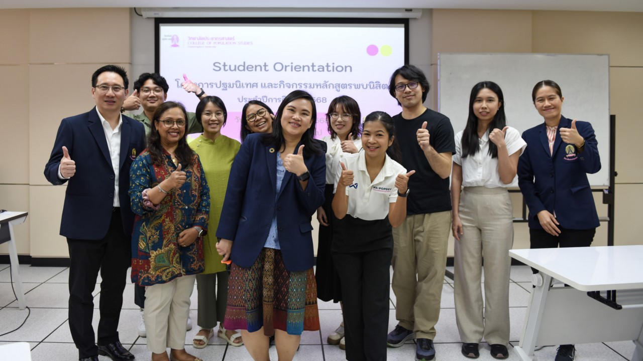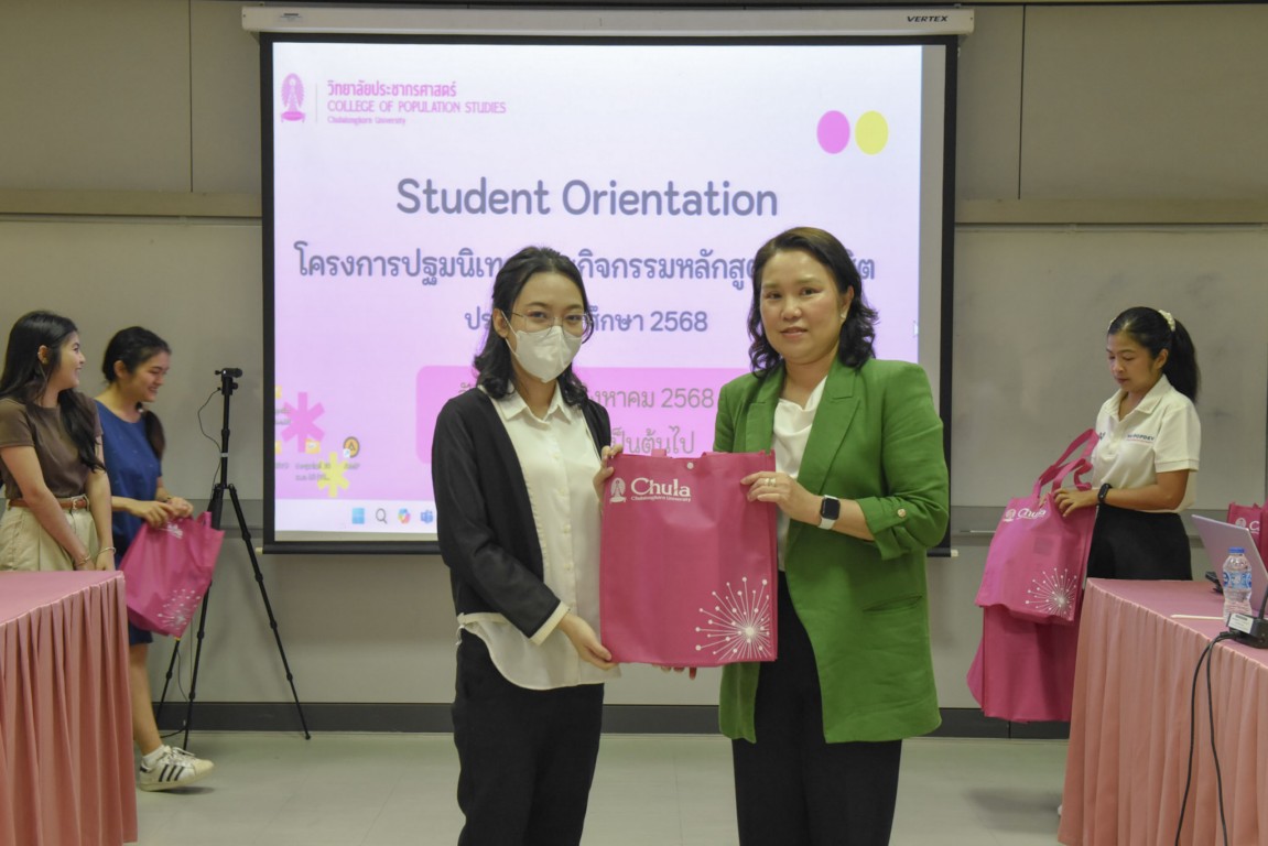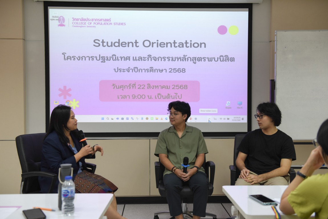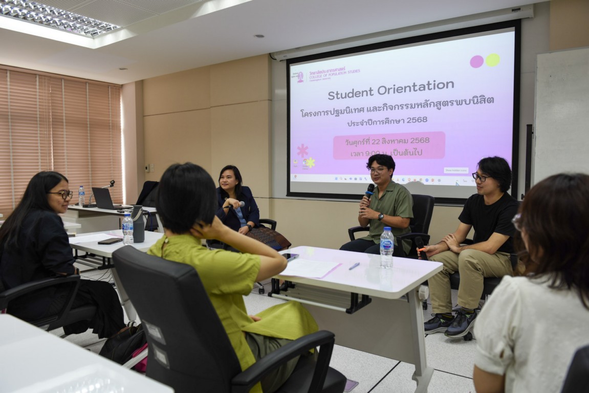 On Friday, August 22, 2025, the College of Population Studies, Chulalongkorn University, organized the Orientation for New Students, Academic Year 2025, at Meeting Room 301, Visid Prachuabmoh Building, and Rooms 810 & 812, Prajadhipok–Rambhai Barni Building. The event was attended by a total of 40 participants, including faculty members, staff, new students, current students, and alumni.