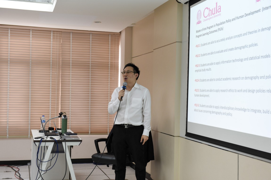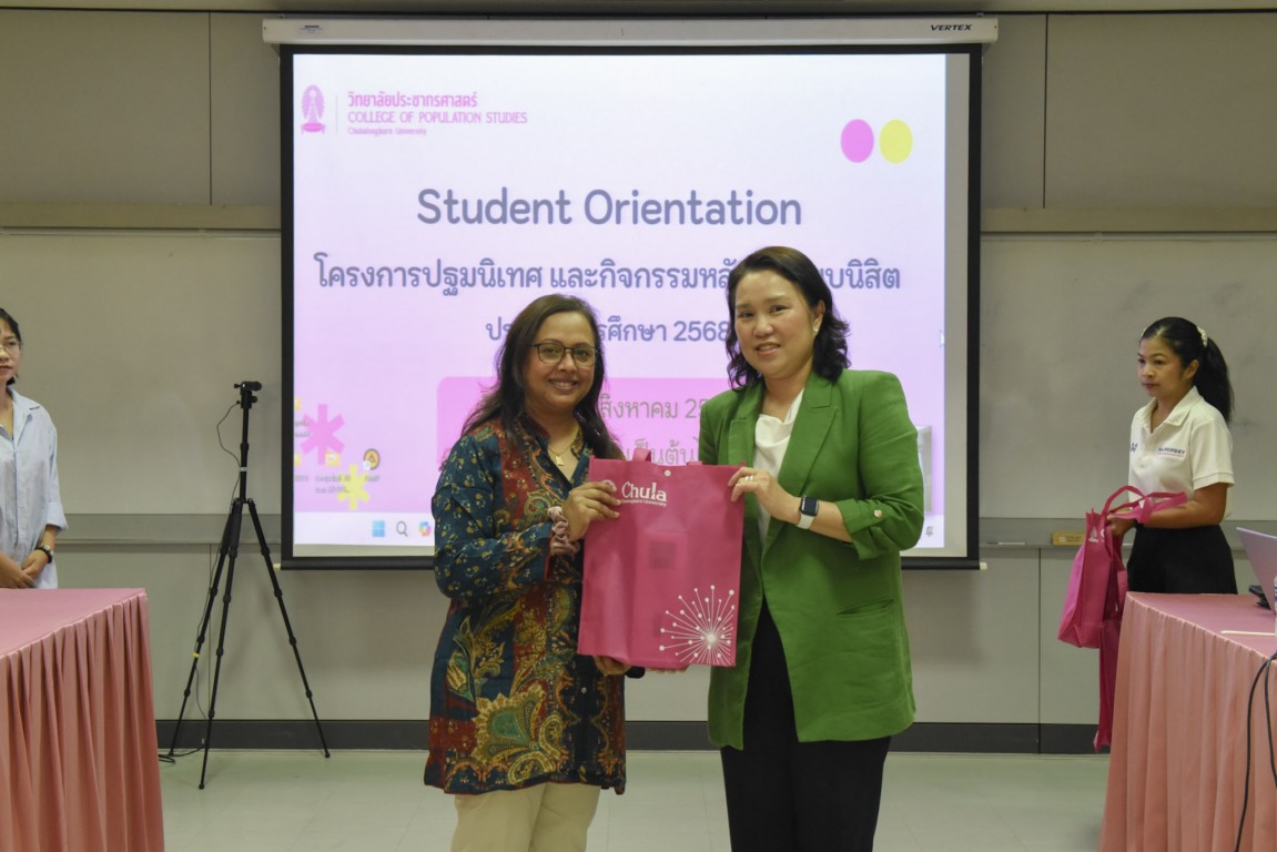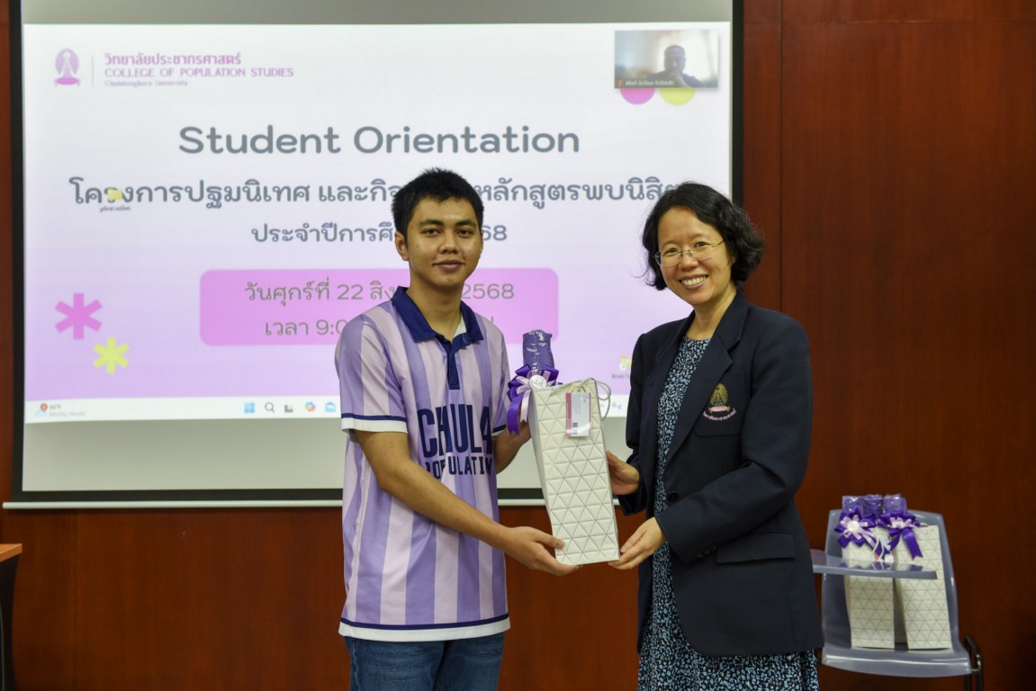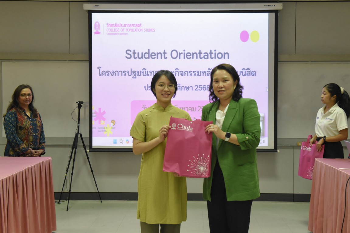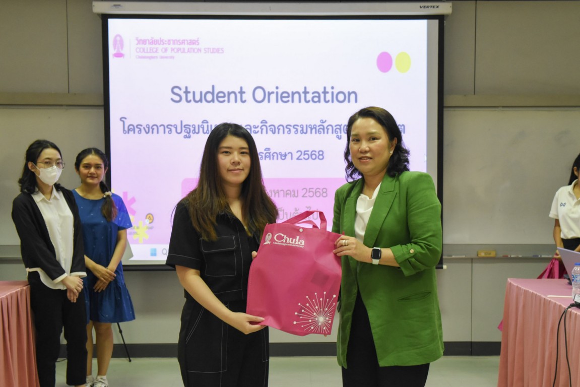 On Friday, August 22, 2025, the College of Population Studies, Chulalongkorn University, organized the Orientation for New Students, Academic Year 2025, at Meeting Room 301, Visid Prachuabmoh Building, and Rooms 810 & 812, Prajadhipok–Rambhai Barni Building. The event was attended by a total of 40 participants, including faculty members, staff, new students, current students, and alumni.