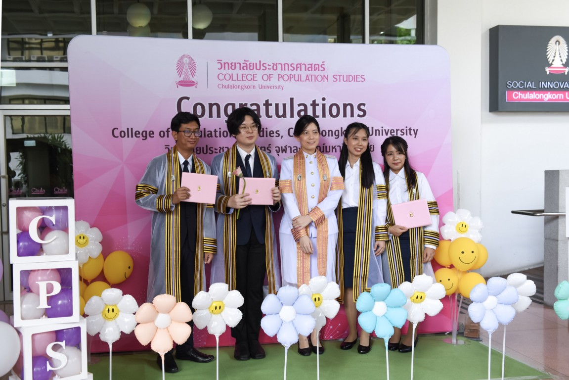 มหาบัณฑิตและดุษฎีบัณฑิตจากวิทยาลัยประชากรศาสตร์ จุฬาลงกรณ์มหาวิทยาลัย จากหลักสูตรศิลปศาสตรดุษฎีบัณฑิตและหลักสูตรศิลปศาสตรมหาบัณฑิต สาขาวิชาประชากรศาสตร์ และหลักสูตรศิลปศาสตรมหาบัณฑิต สาขาวิชานโยบายประชากรกับการพัฒนามนุษย์ (หลักสูตรนานาชาติ) ได้เข้ารับพระราชทานปริญญาบัตร นับเป็นช่วงเวลาแห่งความปลาบปลื้มและภาคภูมิใจของบัณฑิตทุกท่านและครอบครัว