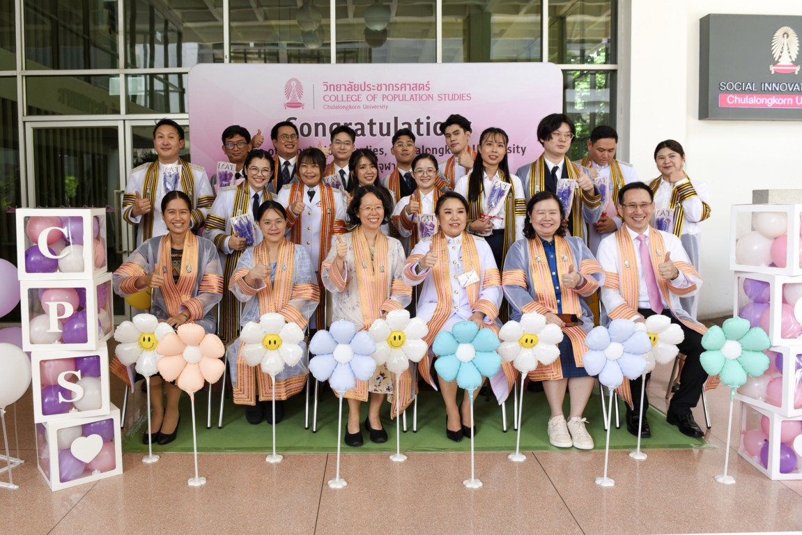 วิทยาลัยประชากรศาสตร์ขอแสดงความยินดีแก่บัณฑิตผู้ทรงเกียรติทุกท่านในโอกาสอันเป็นมงคลแห่งความสำเร็จครั้งสำคัญนี้ ความสำเร็จอันล้ำค่าของท่านมิใช่เพียงผลจากความขยันหมั่นเพียรและการอุทิศตนในการศึกษาเท่านั้น หากแต่ยังสื่อถึงศักยภาพอันยิ่งใหญ่ที่จะเป็นกำลังหลักในการขับเคลื่อนสังคมสู่การพัฒนาอย่างยั่งยืน