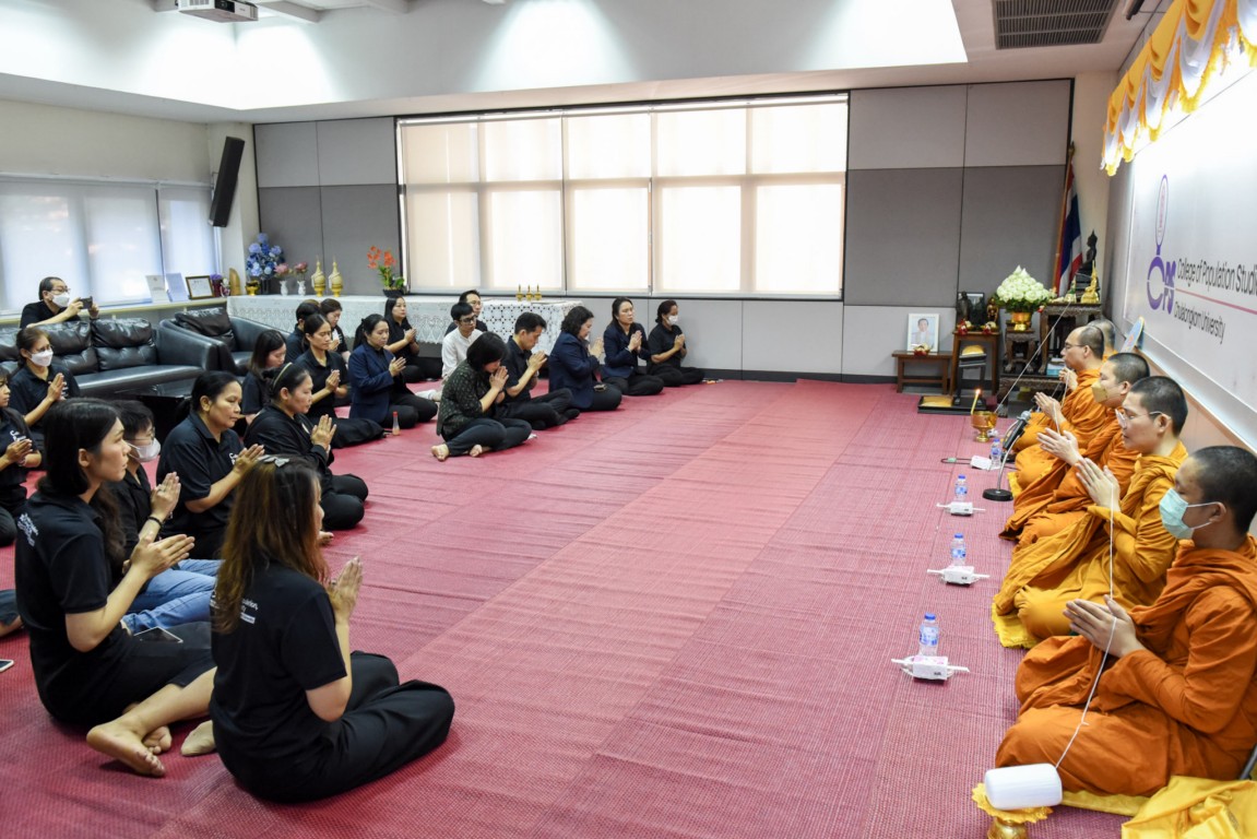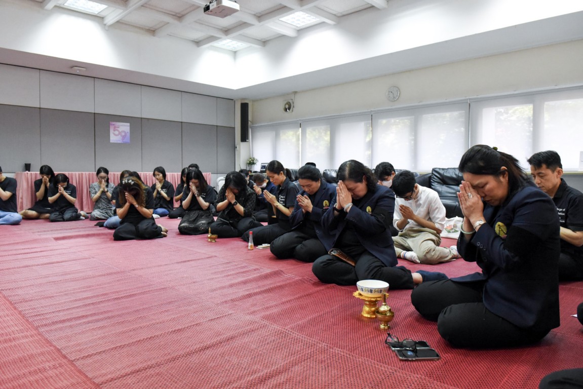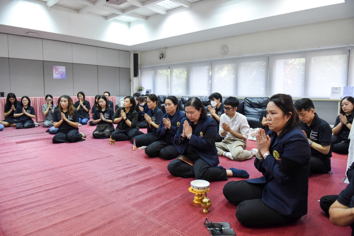 The ceremony featured alms-giving to Buddhist monks from Hua Lamphong Temple, with participation from faculty members, staff, students, retired personnel, and alumni. Attendees also listened to a dharma sermon, bringing blessings and prosperity to the College and all participants.