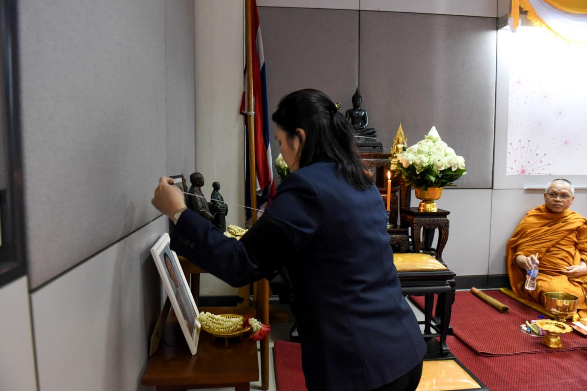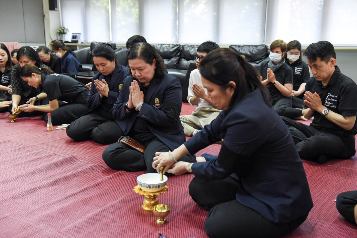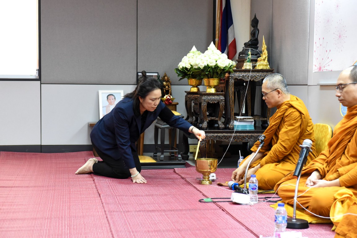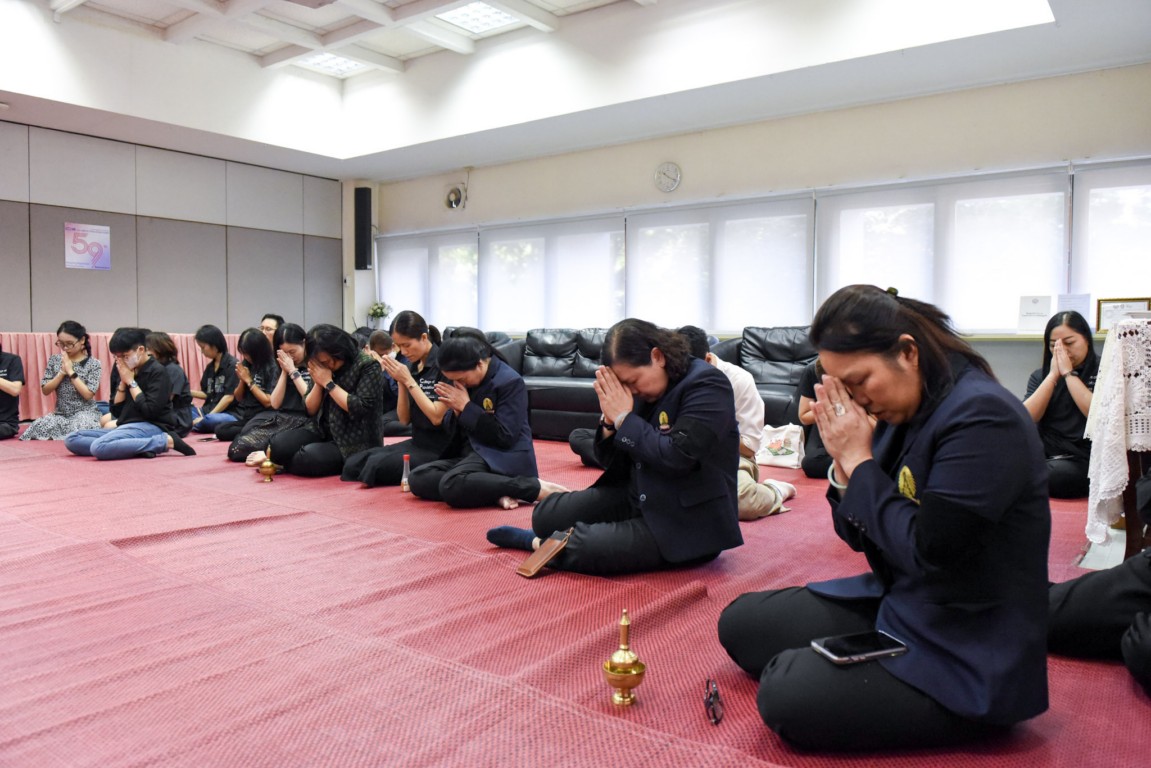 The ceremony featured alms-giving to Buddhist monks from Hua Lamphong Temple, with participation from faculty members, staff, students, retired personnel, and alumni. Attendees also listened to a dharma sermon, bringing blessings and prosperity to the College and all participants.