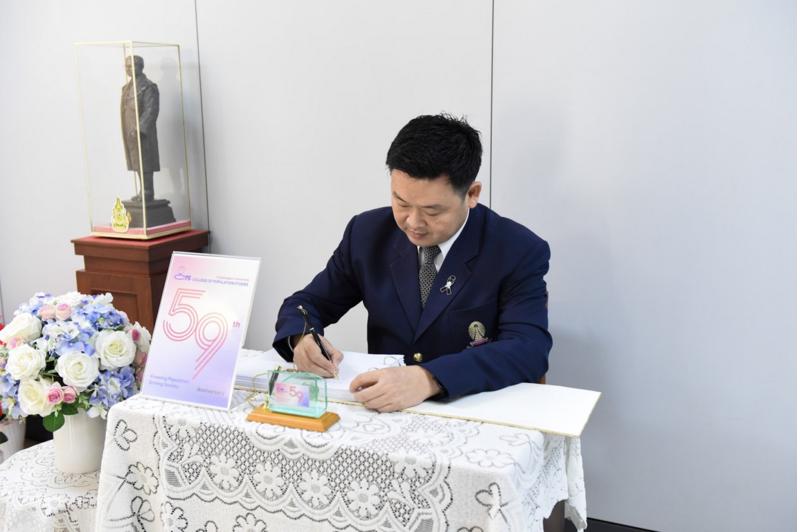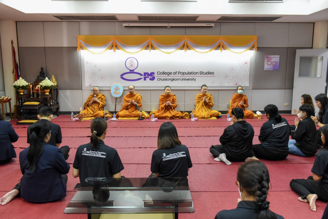 วิทยาลัยประชากรศาสตร์ จุฬาลงกรณ์มหาวิทยาลัย นำโดยผู้ช่วยศาสตราจารย์ ดร. รักชนก คชานุบาล (คณบดีวิทยาลัยประชากรศาสตร์) จัดพิธีทำบุญเลี้ยงพระเพื่อความเป็นสิริมงคลในโอกาสครบรอบ 59 ปีแห่งการสถาปนาวิทยาลัยฯ เมื่อวันอังคารที่ 23 ธันวาคม 2568 ณ ห้องประชุม 301 ชั้น 3 อาคารวิศิษฐ์ ประจวบเหมาะ ในโอกาสนี้ทางวิทยาลัยฯ ได้รับเกียรติจากคณะผู้บริหารส่วนงานต่างๆ ภายในจุฬาลงกรณ์มหาวิทยาลัย ร่วมส่งคำอำนวยพรเพื่อแสดงความยินดีผ่านระบบออนไลน์