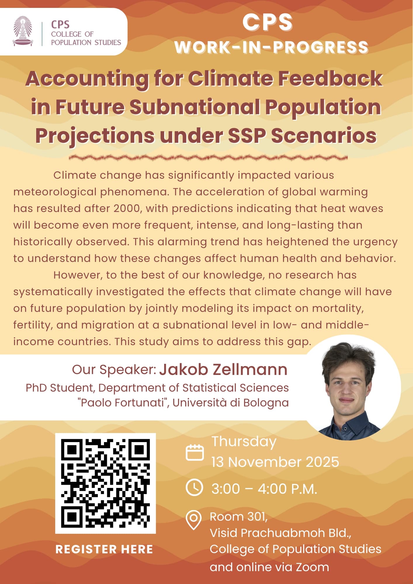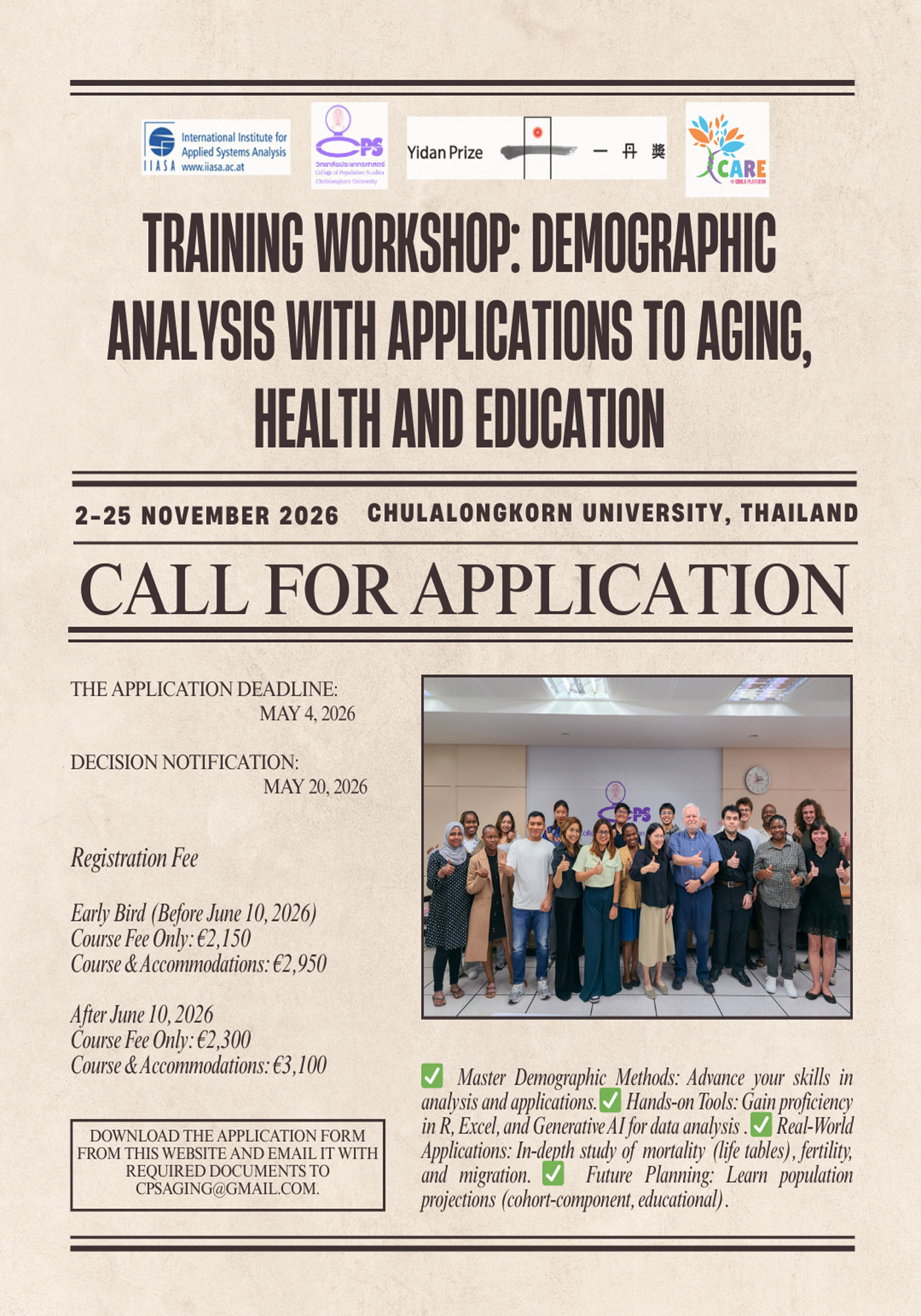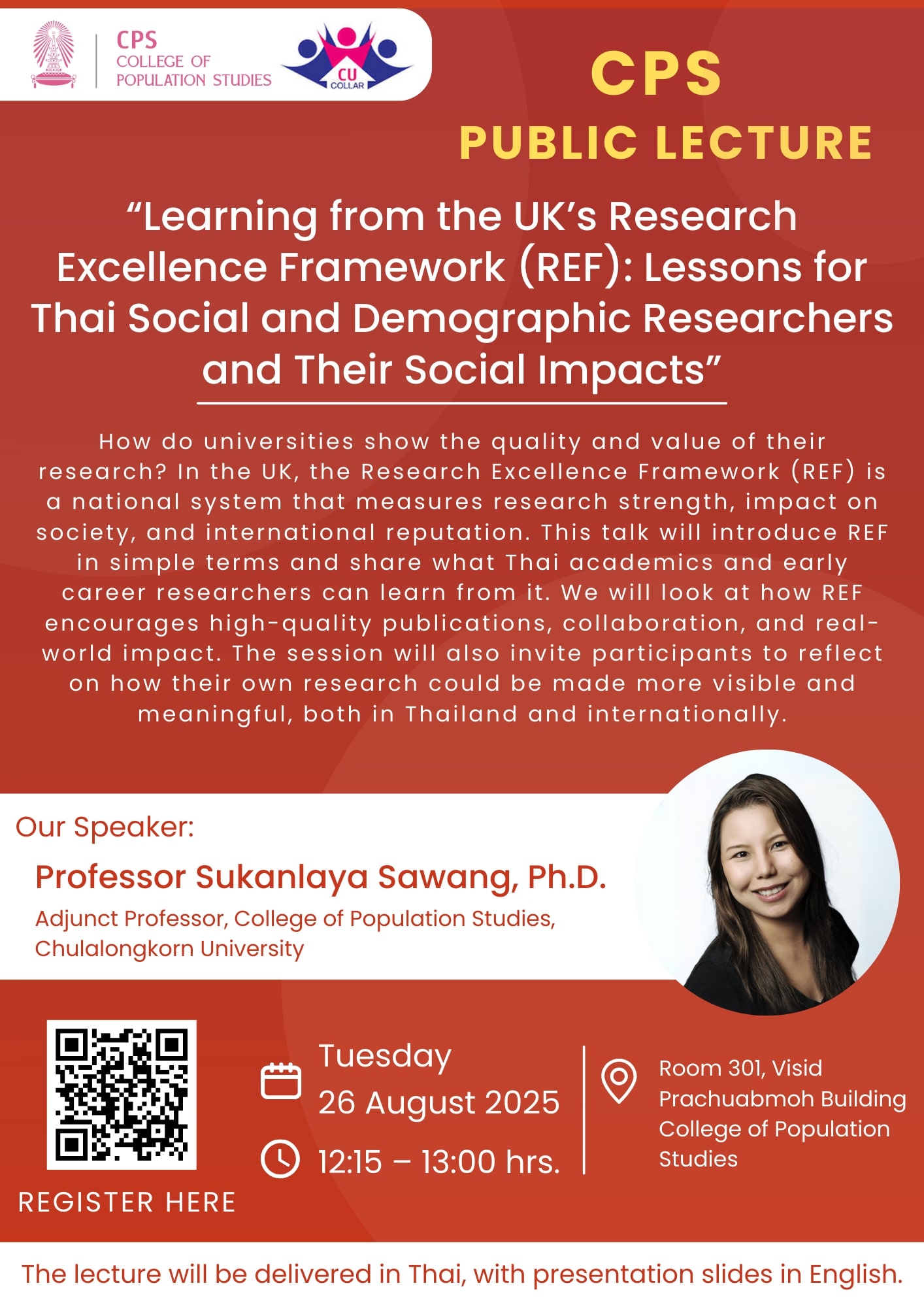 วิทยาลัยประชากรศาสตร์ ผลิตบัณฑิตที่มีความรู้ ความสามารถ และคุณธรรม ตลอดจนสามารถนำความรู้ไปใช้ให้เกิดประโยชน์ต่อการพัฒนาประชากรและสังคมส่วนรวม โดยมุ่งผลิตผลงานวิจัยที่มีคุณภาพ เพื่อต่อยอดเพิ่มพูนองค์ความรู้และสอดประสานกับการผลิตบัณฑิต และการบริการวิชาการ รวมถึงให้บริการวิชาการทั้งในลักษณะการให้คำปรึกษา การฝึกอบรม การบริการข้อมูล การถ่ายทอดองค์ความรู้และนำเสนอผลการวิจัยด้านประชากรศาสตร์ ให้ข้อเสนอแนะเชิงนโยบาย ตลอดจนผลักดันให้เกิด การขับเคลื่อนการดำเนินงานเพื่อพัฒนาคุณภาพชีวิตประชากรทั้งในระดับชุมชนระดับชาติและระดับโลก